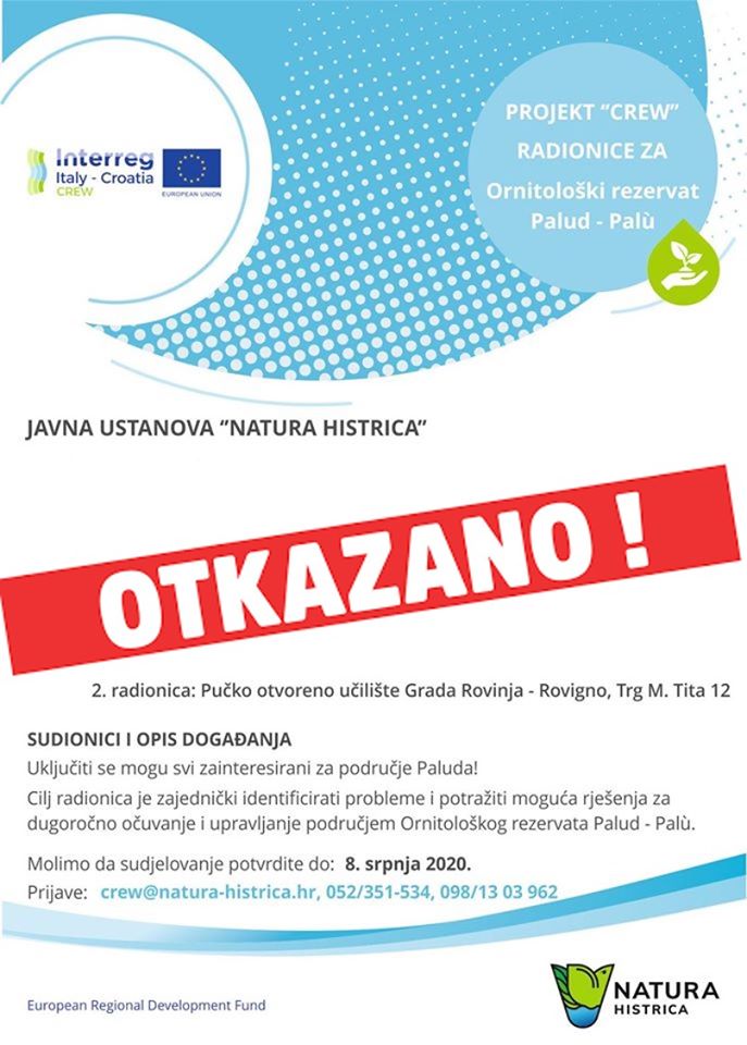 Obavještavamo sve zainteresirane da se ODGAĐA 2. radionica s dionicima koja se trebala održati u Rovinju u četvrtak, 16. 7. 2020., zbog iznenadnih i nepredviđenih okolnosti.☹️☹️☹️
