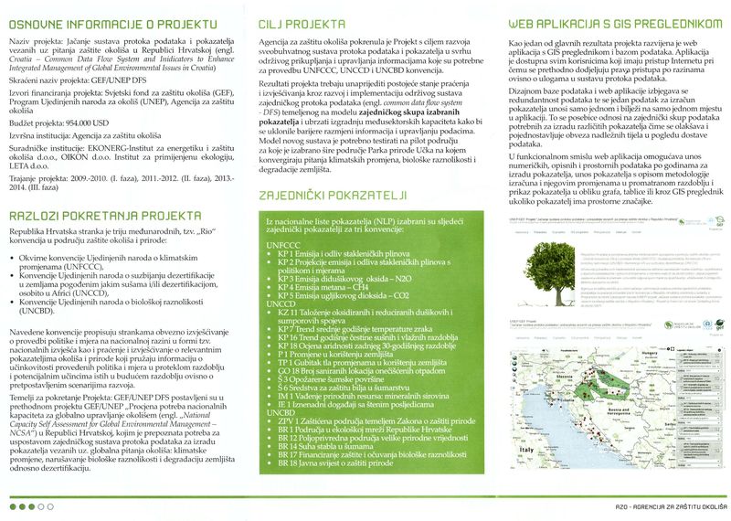 Agencija za zaštitu okoliša pokrenula je Projekt s ciljem razvoja sveobuhvatnog sustava protoka podataka i pokazatelja u svrhu održivog prikupljanja i upravljanja informacijama koje su potrebne za provedbu UNFCCC, UNCCD i UNCBD konvencija. Jedan od glavnih rezultta projekta je web aplikacija s GIS preglednikom i bazom podataka.